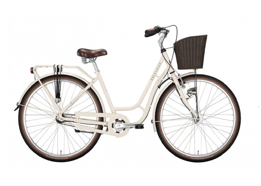 Suurte, 28-tolliste ratastega jalgratas Excelsior Swan Retro. Jalgratas on hetkel üha populaarsemaks muutuva, retrohõngulise stiiliga. Suurepärase väljanägemise annavad rattale nii raami kuju, suured rattad kui ka palju väikseid, hoolikalt läbimõeldud lisasid