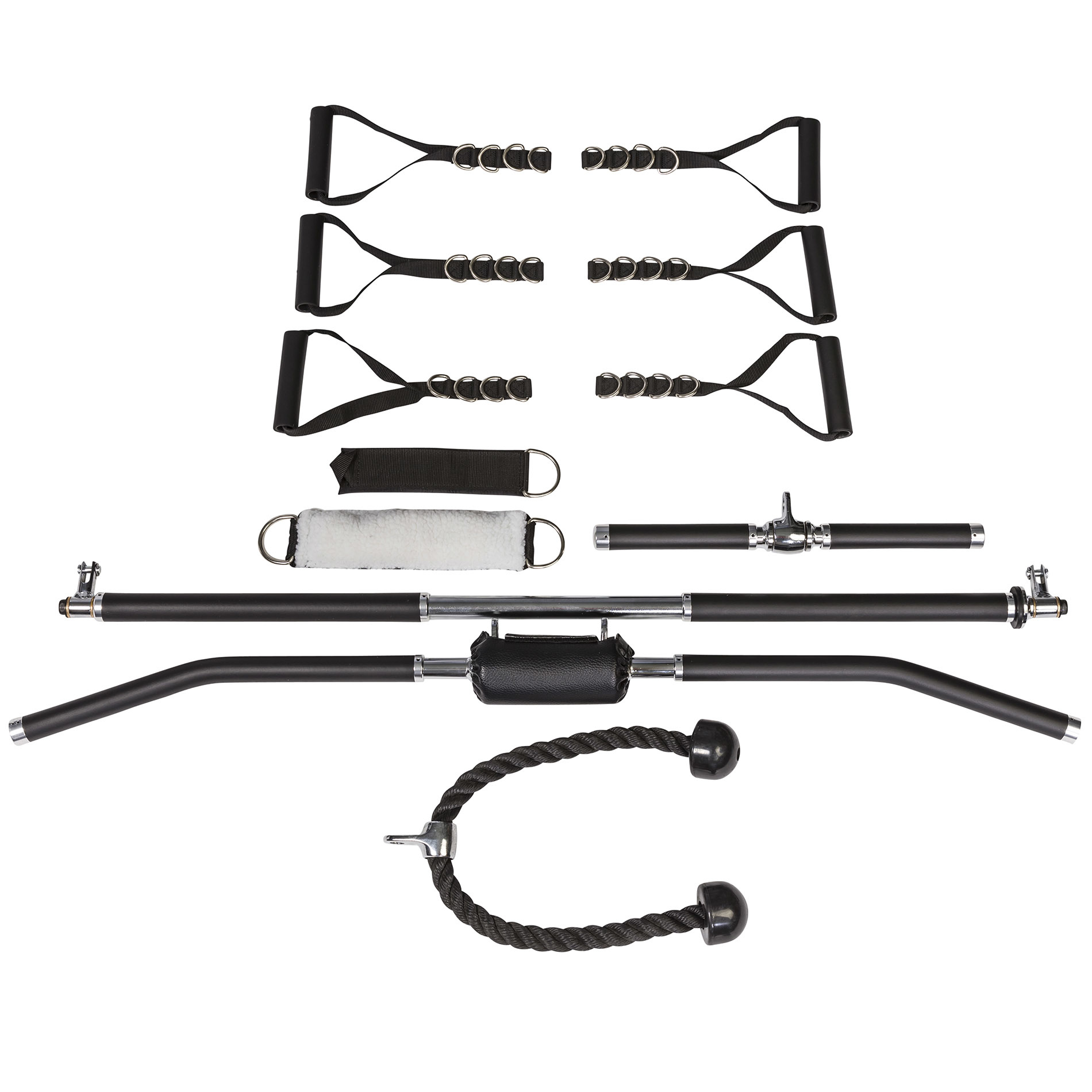 - Raskused: 2 x 91 kg (2 x 20 raskusplaati, üks kaaluga 4,5 kg)