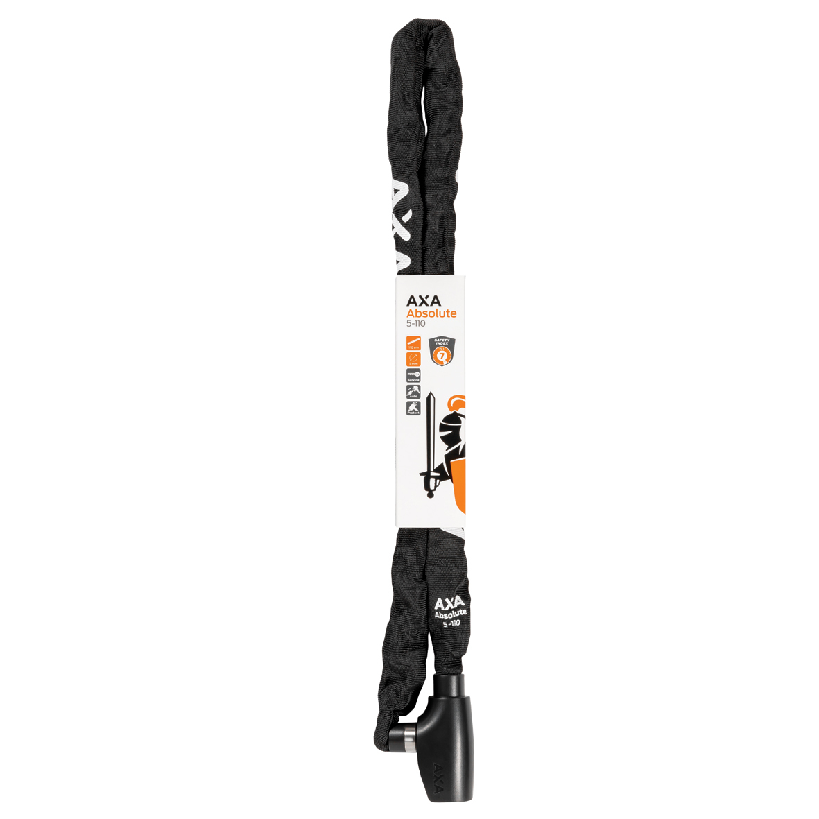 Absolute 5 on kett igapäevaseks kasutamiseks. Absolute 5 on 110 cm pikk, nii et saate oma ratta hõlpsalt varda või aia külge kinnitada. Sellel on automaatne klõpsamisfunktsioon. See tähendab, et sulgemisel klõpsate otsa lukupea sisse. Karastatud terasest lülide läbimõõt on 5 mm. Lisaks on keti ümber tugev polüesterkate, mis tagab, et jalgratast ei kriimustata.