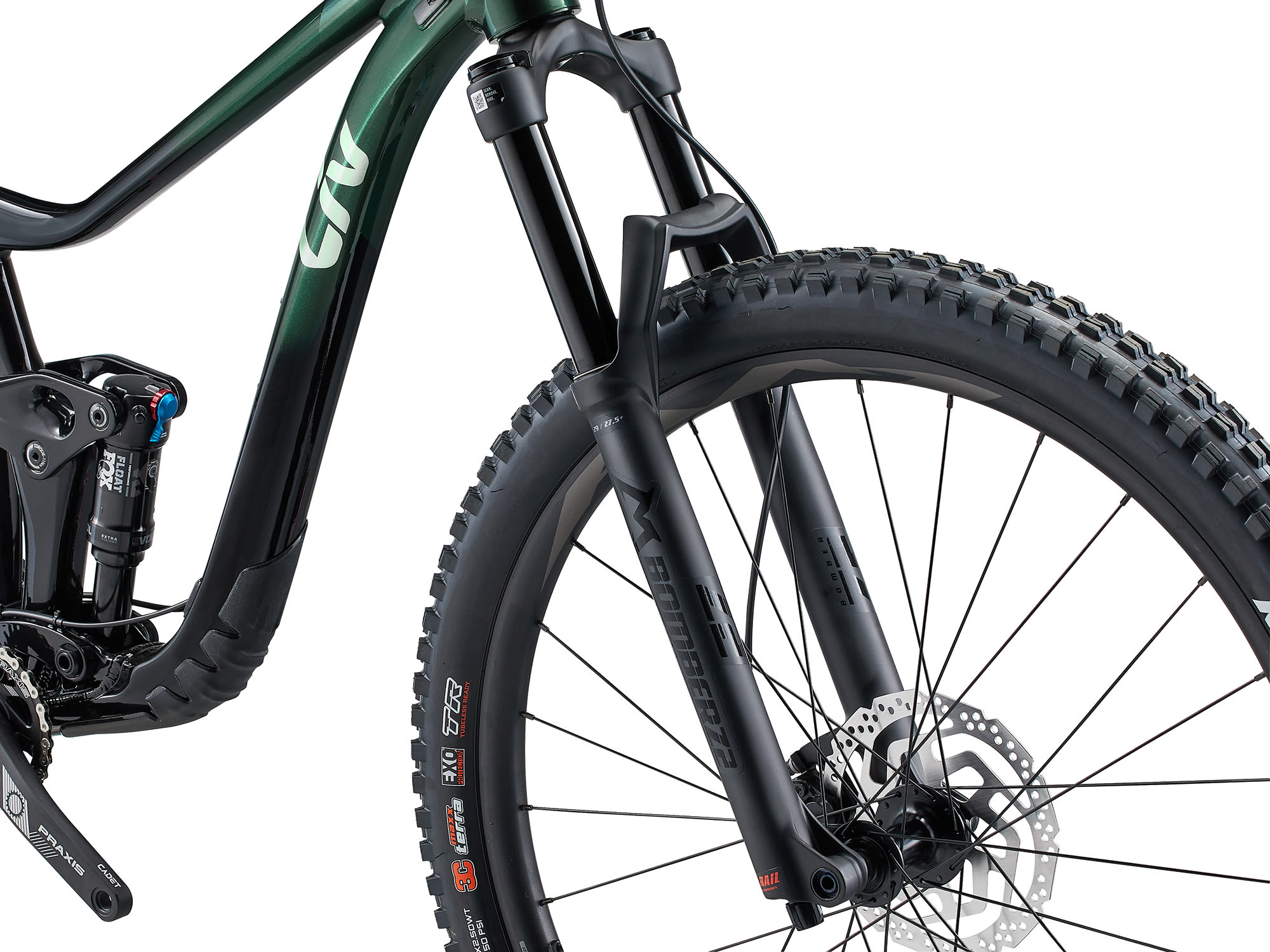 • Amort: Fox Float Performance 185×50, custom tuned for Liv