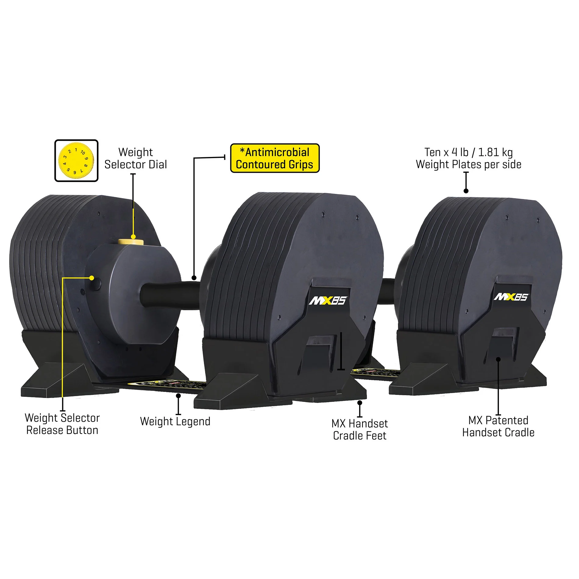 Treening Tunturi MX85 hantlitega on üli lihtne, kiire ja ohutu. MX85 kiire raskus vahetus süsteemiga saad valida oma treeningraskuse lihtsalt keerates nuppu. Patenteeritud lukustussüsteem hoiab iga raskusplaati kindlalt paigal, tagades treeningu fikseeritud hantli tunnetusega. MX85-l on ergonoomiliselt kujundatud käepide, mis hoiab ära käte krampimise treeningu ajal. Tänu kummiviimistlusele säilitad alati kindla haarde nii kergemate kui ka raskemate treeningute ajal. Raskete treeningute ajal saad hantli mugavalt reiele toetada, ilma et väljaulatuvad osad jalale pihta läheksid.