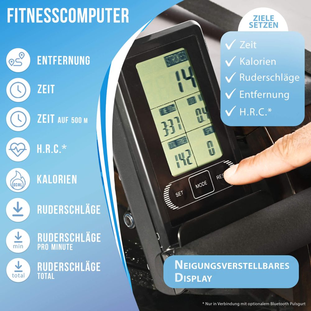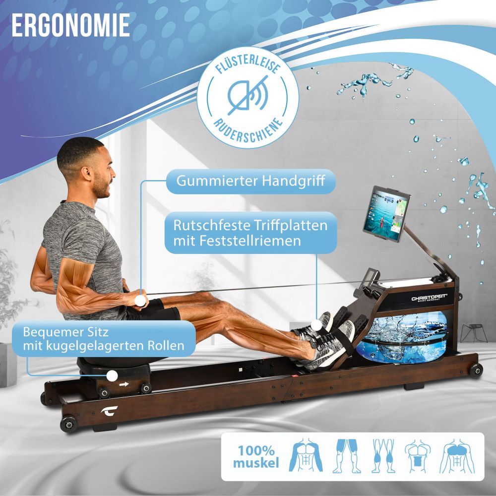 Unikaalne treeningkogemus koos Christopeit Hudson sõudeergomeetriga. Vastupidav sõudemasin tehtud bambusest kombineerib innovatiivse vesi-pidurdussüsteemi koos Teie enda tõmbejõuga, et võimaldada autentset ning liigesesõbralikku sõudetreeningut. Treeningintensiivsust saab määrata tõmbejõuga: tugevalt ja kiirelt tõmmates ehitate lihast, aeglaselt ning rahulikult suurendate vastupidavust.