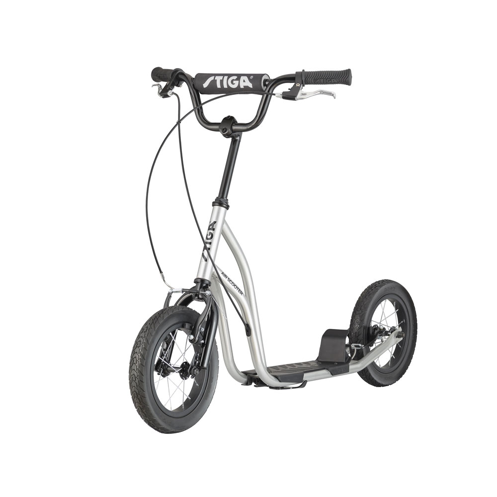 Stiga tõukeratas Air Scooter 12″ – kiire sõidu tagamiseks on õhkratastega sport-tõukeratas mugav sõiduvahend erinevate teekonarustega teedele. Käsipidurid nii esi- kui tagarattal.
